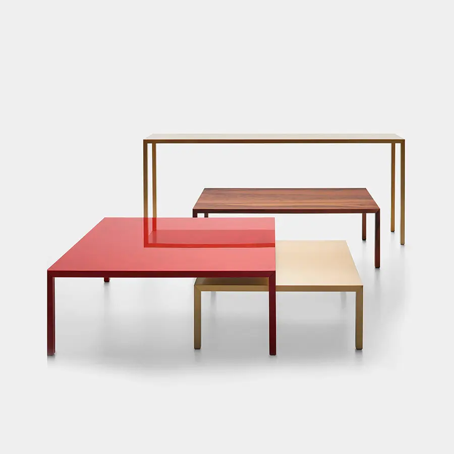 Está inspirado en la antigua técnica de la laca china, un proceso que implica la elaboración manual del color y la siguiente aplicación de varias capas de poliéster transparente, que hacen que la superficie sea lisa y brillante, capaz de reflejar la luz y animar la mesa. El tablero de la mesa presenta un juego de sombras que genera un efecto de lente que mejora el color y la profundidad. Tense Diamond se adapta a cualquier habitación de la casa, desde la sala de estar hasta el comedor, aportando personalidad a los espacios.
