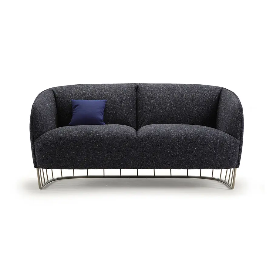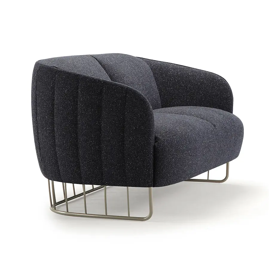 Continuando con el tonel como inspiración, el estudio Note ha proyectado un sillón y un sofá de mayor tamaño y con una sentada más relajada. El tapizado de las almohadas interiores es liso mientras que la parte exterior del respaldo es acolchado con un dibujo de líneas verticales para simular que las duelas del tonel trepan por la estructura.