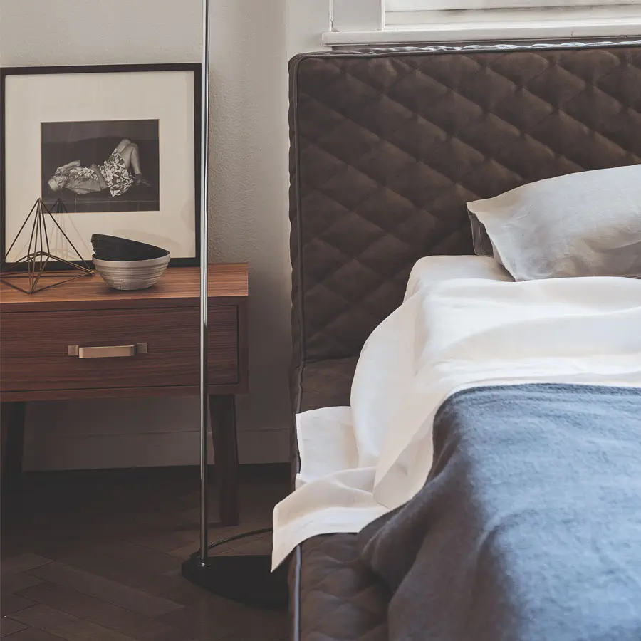 Producto con una forma límpida y compacta, Tray se caracteriza por una rigurosa geometría, en la que la importante estructura desmontable parece casi un marco que contiene el sueño, una bandeja sobre la que está apoyado el colchón, para un descanso íntimo y protegido. Representa una estética limpia y esencial, resaltada por el grogrén que dibuja su perfil, junto con las patas de madera maciza de nogal natural, negro, blanco, gris, océano o tórtola.