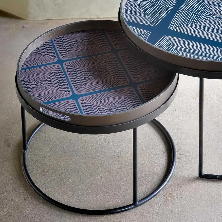 La mesa de bandejas es una de nuestras piezas más versátiles: si bien cumple su función de mesa auxiliar, su capacidad para adoptar diferentes bandejas le permite mezclar o combinar varios colores y patrones, creando una pieza adaptada a la personalidad y exclusivamente suya. Por supuesto, el conjunto de mesas nidos genera el doble de diversión y creatividad.