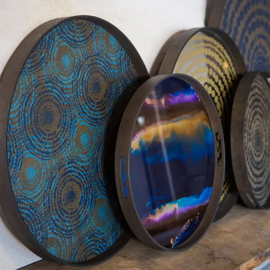 La colección de mesas auxiliares de Notre Monde, se mueve entre la curiosidad por la vida y los viajes alrededor del mundo, la recopilación de imágenes y sensaciones, dan lugar a productos y accesorios sin limitaciones. Sus múltiples inspiraciones han dado lugar a composiciones pictóricas extremadamente ricas, basadas en patrones abstractos, complejos y modernos, organizados en combinaciones y capas sucesivas que interactúan con materiales, colores, texturas y acabados.