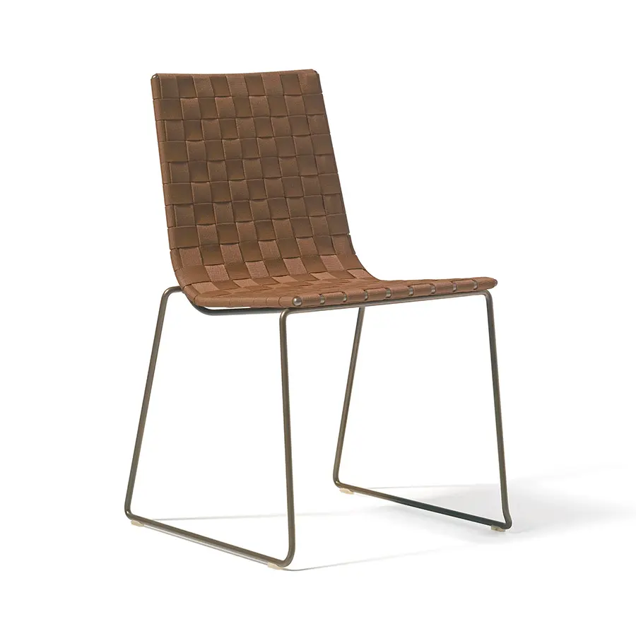 Trenza es una familia completa de sillas, sillones y taburetes. Las bandas tejidas características del respaldo y el asiento le dan al diseño una apariencia fresca y ligera. Los colores de la banda son Terra Brown, Sand, Graphite y White y facilitan la ventilación sin renunciar a la comodidad. La estructura de acero puede ser marrón o blanca.