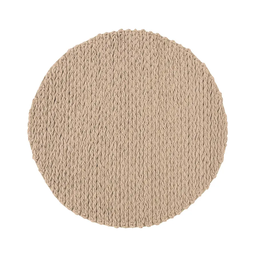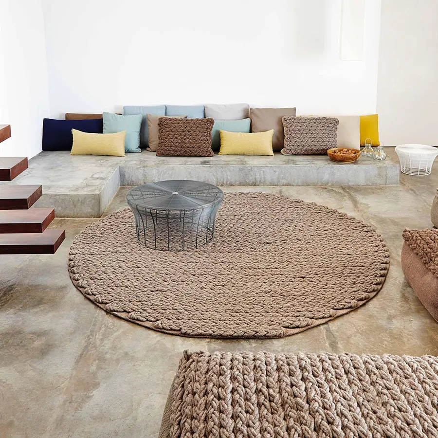 Esta es la alfombra redonda de nuestra colección Trenzas, un diseño que también está disponible en tono crudo o marrón. Su trenzado de lana gruesa es una bucólica alusión al aparente entrelazado de las espigas silvestres. Con esta voluminosa textura en color marrón grisáceo, la colección busca transmitir una atmósfera natural y rústica de estilo contemporáneo. Es una pieza de grandes dimensiones, que mide 225 cm de diámetro.