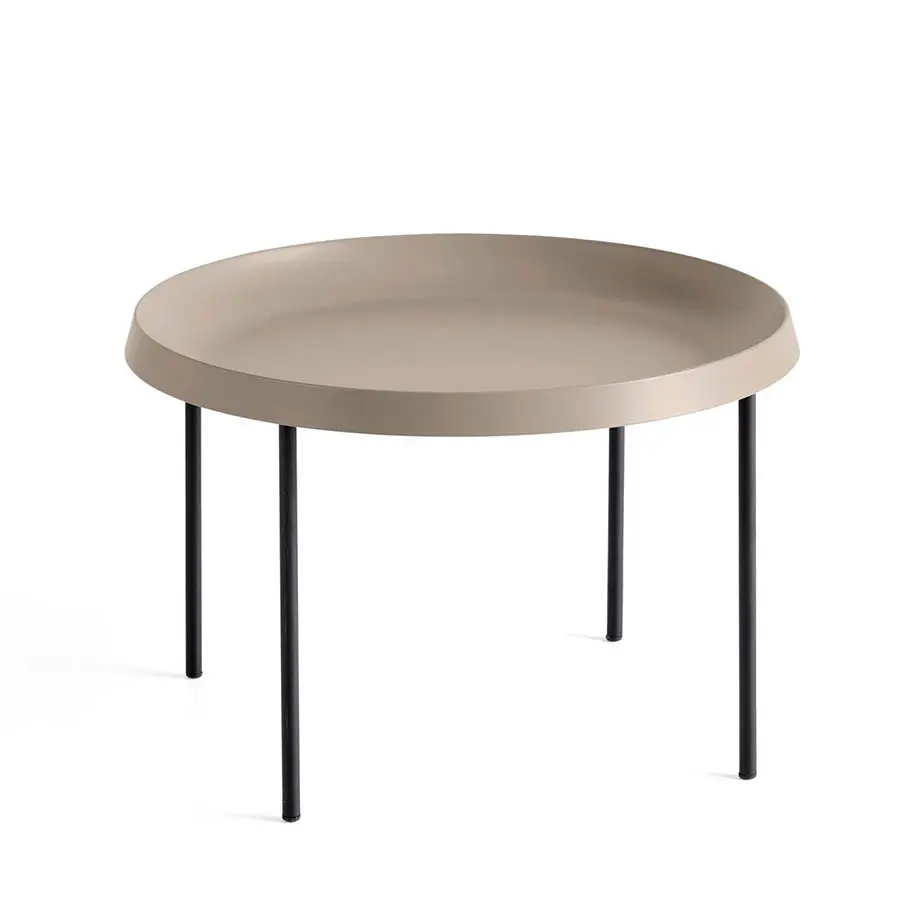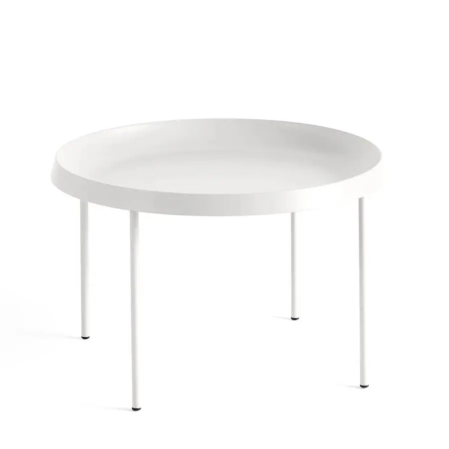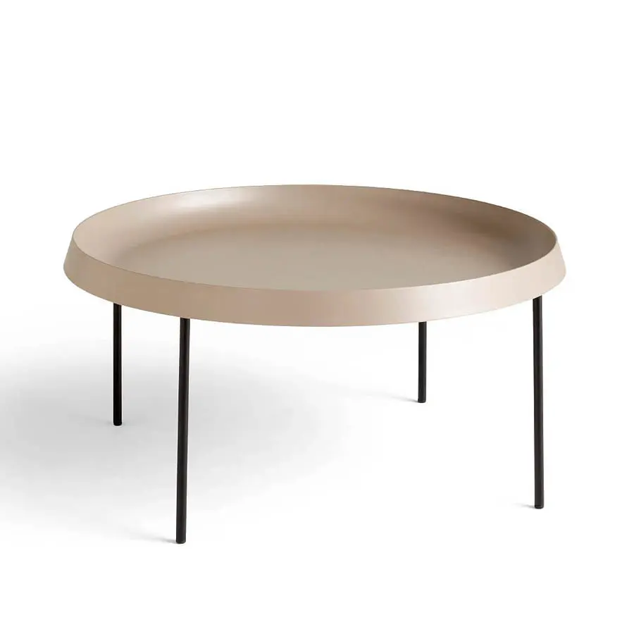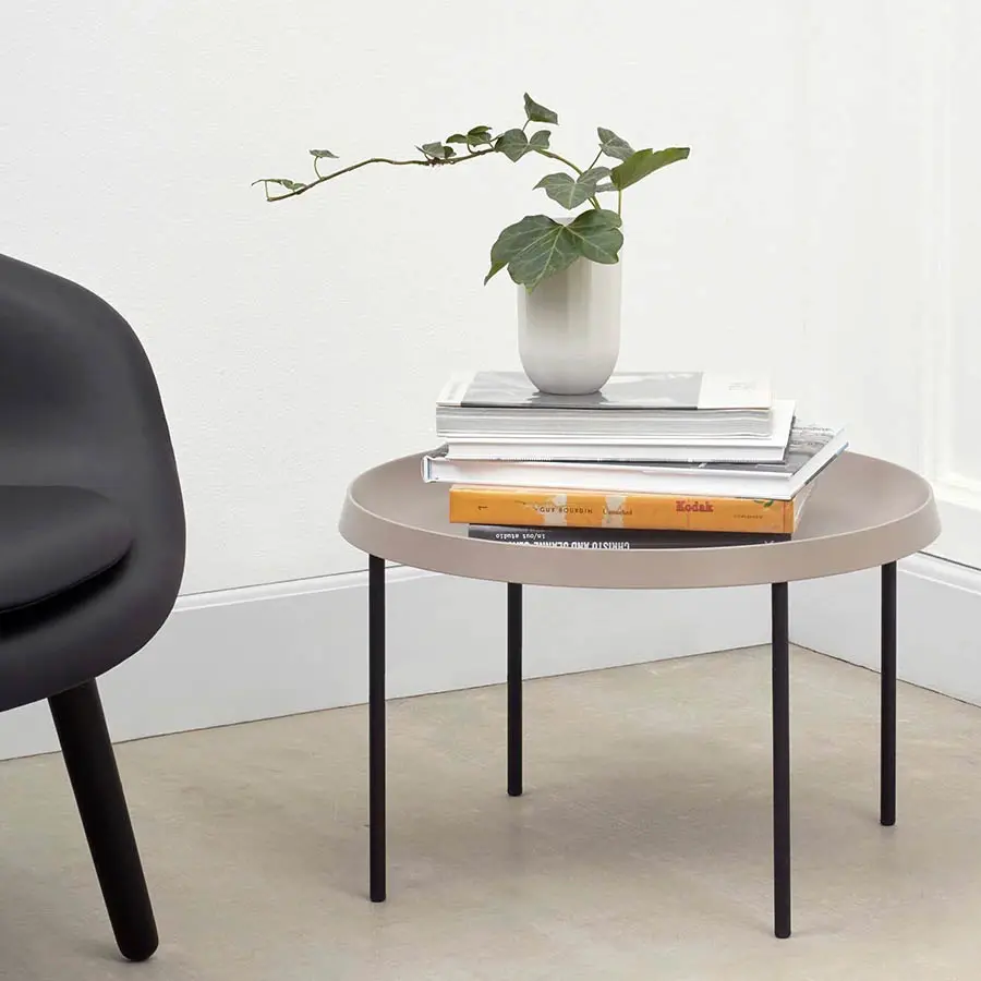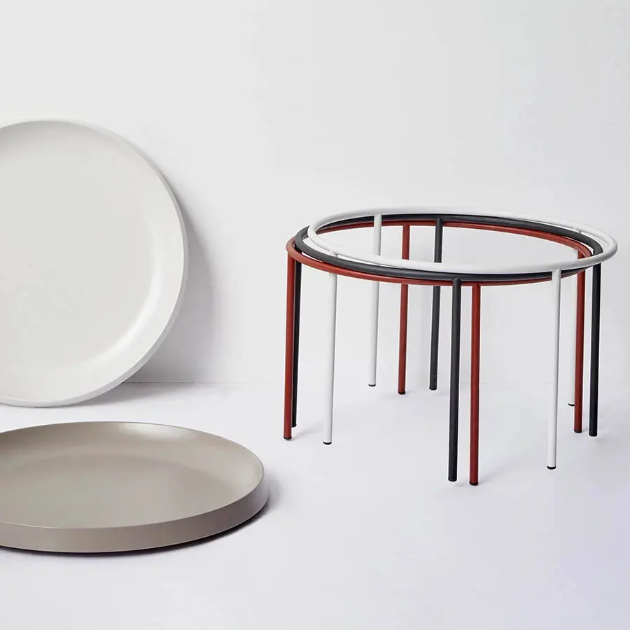 Compuesta por dos componentes: una bandeja redonda de acero hilado con bordes estables y fáciles de sostener, y una estructura de cuatro patas de acero tubular, el diseño minimalista del Tulou permite que la bandeja se traslade cómodamente de un espacio a otro. Disponible en una variedad de colores y acabados, la versátil Mesa de Café Tulou puede prosperar tanto en espacios públicos como privados.