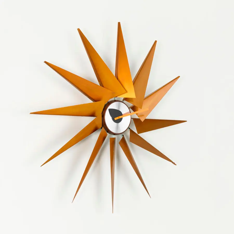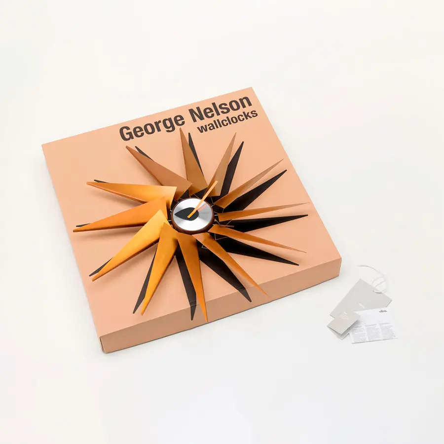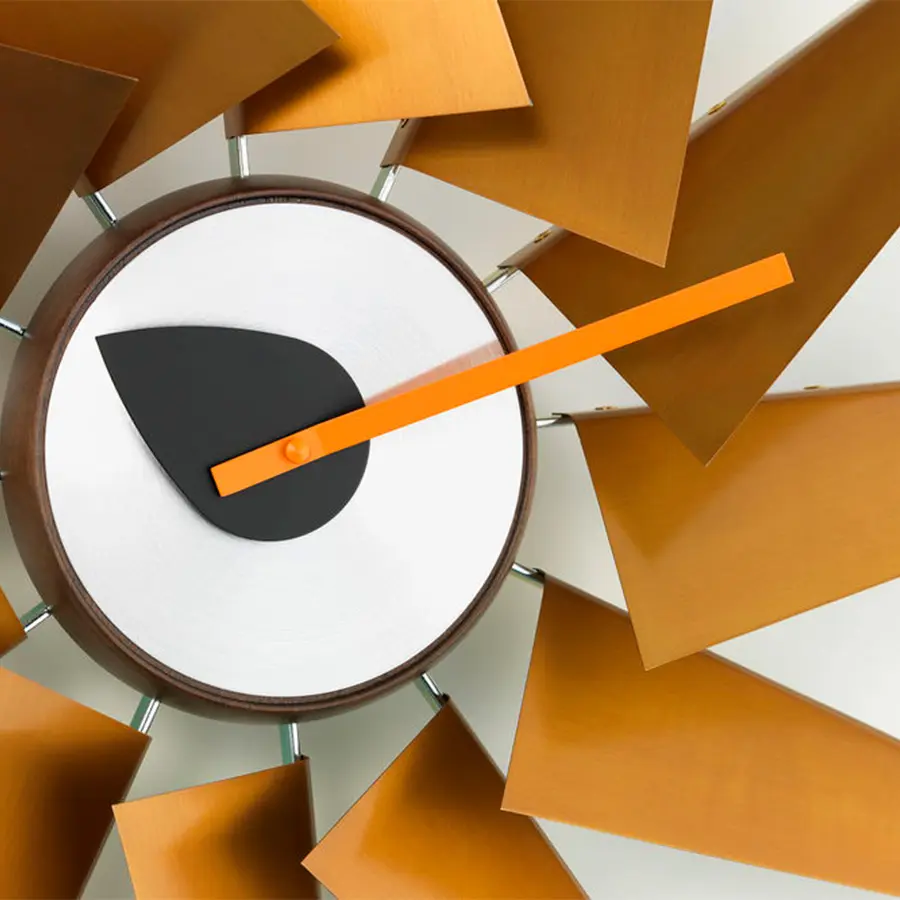En 1947, el diseñador americano George Nelson recibió el encargo de crear una colección de relojes. Después de estudiar la forma en que la gente utilizaba los relojes, Nelson llegó a la conclusión de que la hora se podía leer según la posición relativa de las agujas, lo que permitía prescindir de los números. Además, como la mayoría utilizaba relojes de pulsera, supuso que los relojes de pared habían pasado a ser elementos decorativos de los interiores.