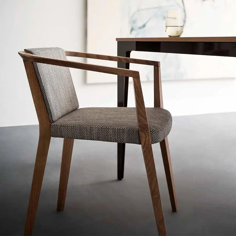 Viky es un silla con estructura de madera maciza de roble, en la que el respaldo continúa por los lados para dar forma a los reposa-brazos. Viky está disponible en tres variantes: asiento tapizado (Viky 1), asiento y respaldo vertical tapizados (Viky 2), asiento y respaldo horizontal tapizados (Viky 3).