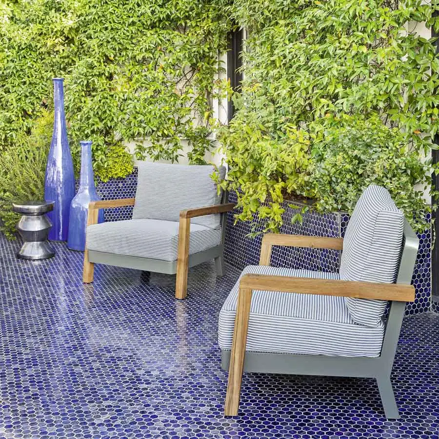 El sillón Win 05 combina la ligereza del aluminio de la estructura, disponible en los acabados blanco y gris, con la ductilidad y resistencia de la teca natural, utilizada para los brazos. El asiento es bajo y confortable, gracias a profundos cojines desenfundables, utilizados también para el respaldo, y junto a los cojines de apoyo, para un marcado confort.