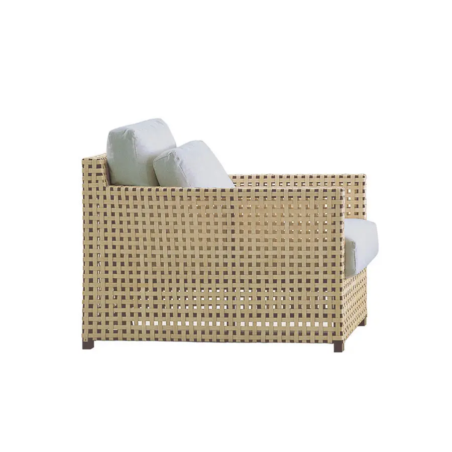 Una estructura de líneas rectas, pero de gran ligereza visual, caracteriza a la familia de sofás WK, disponibles en dos o tres plazas. Una propuesta con un atractivo clásico y exótico al mismo tiempo, con estructura de haya revestida con una textura realizada con entramado de pergamino natural, que contiene suave cojines sueltos de asiento y de respaldo.