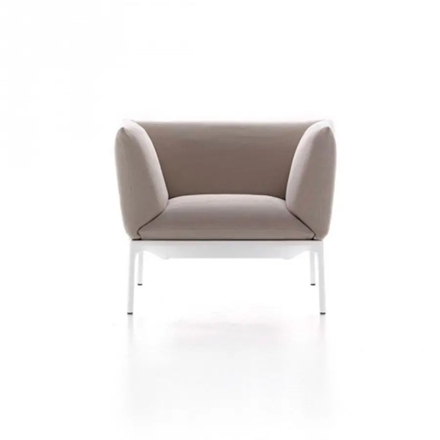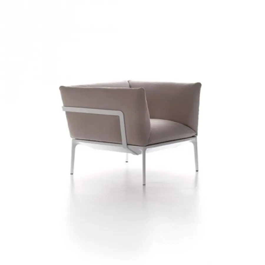 La estructura es de aluminio y «abraza» los sofisticados cojines rellenos de algodón o plumas. Ofreciendo la oportunidad de jugar con telas, acabados y colores, Yale con su fuerte identidad se adapta a todo tipo de interiores, tanto residenciales como contract. Tal elegancia, purificada de cualquier manierismo y centrada en la esencia del producto, también se puede encontrar en Yale X, Yale Bed y Yale Low Table.