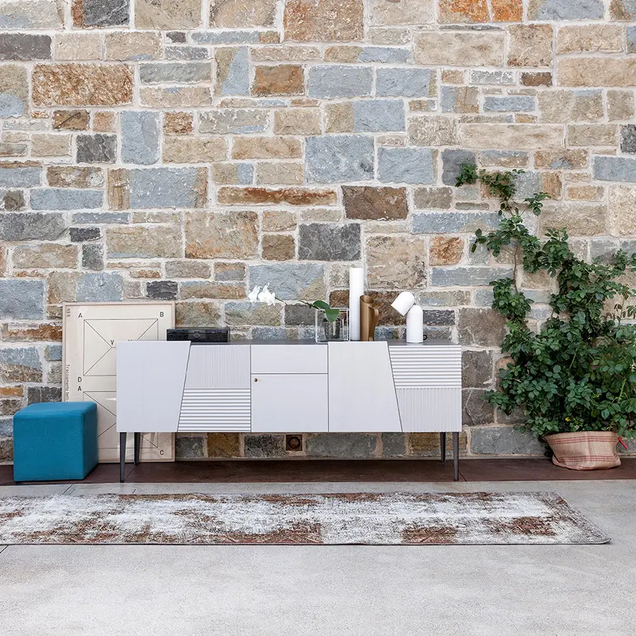 Zero es una colección joven y creativa concebida de acuerdo con las nuevas tendencias de muebles que presentan un intercambio entre diferentes espacios del hogar y una versatilidad altamente funcional. El aparador con proporciones armoniosas, se renueva con cortes asimétricos y líneas geométricas en los frentes. Se nota la alternancia de puertas y cajones y la fabricación de roble tallado con diferente orientación de las líneas. Un mueble multifuncional, con proporciones sobrias, concebido para ser colocado en diferentes contextos y de estilo creativo.
