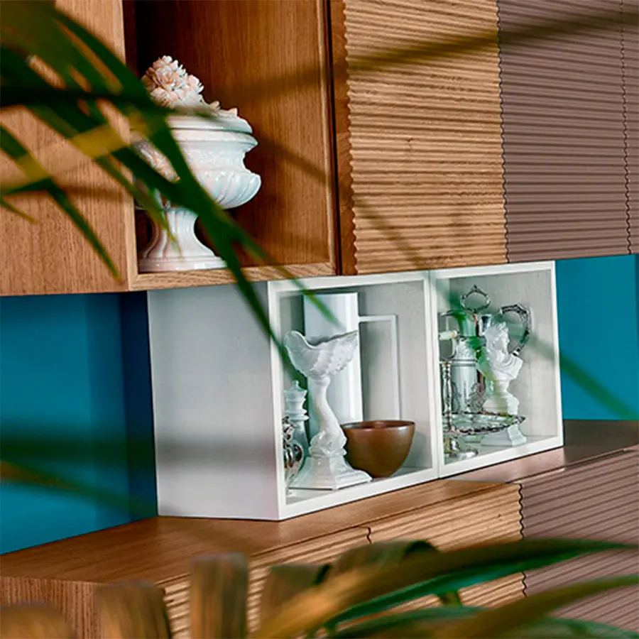 La modularidad del comedor Zero.16 permite crear posibilidades de configuración casi infinitas. Cada configuración refleja elecciones y estilos individuales, ofreciendo la garantía de ser único, exclusivo y rico en personalidad.