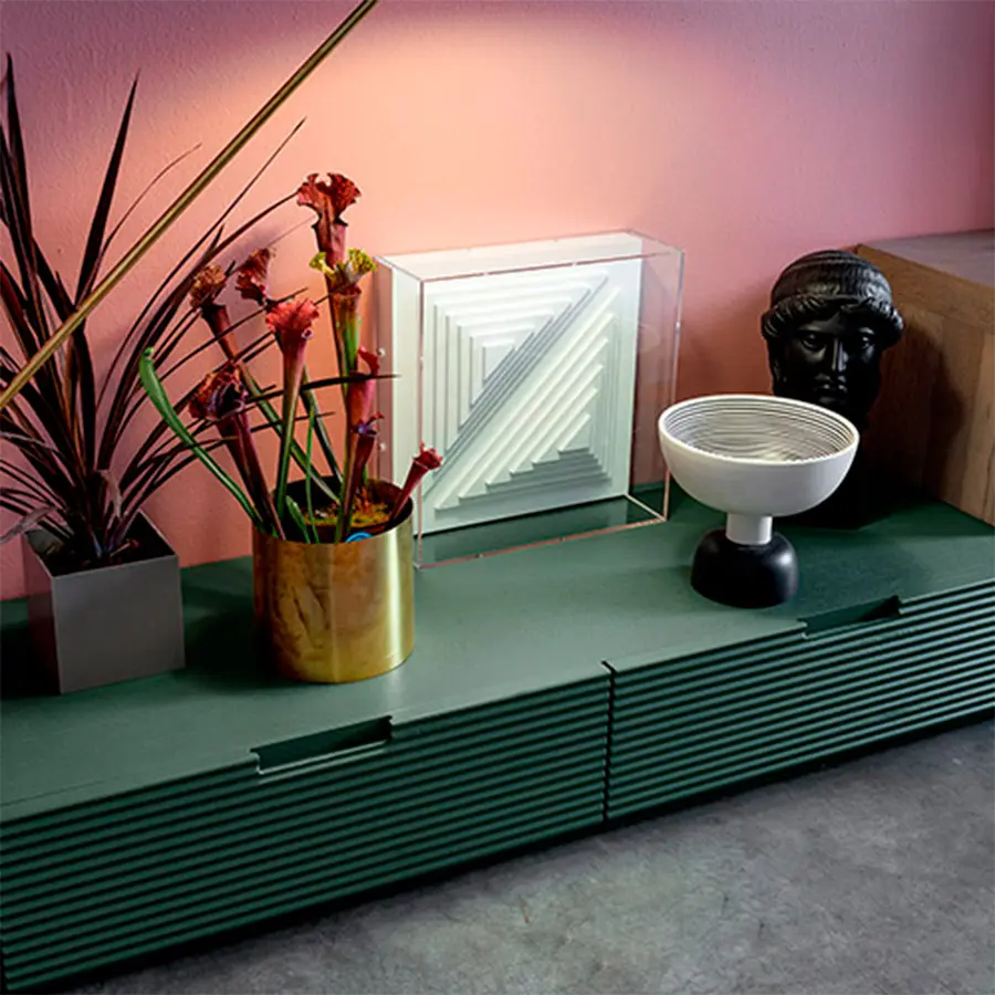 La modularidad del comedor Zero.16 permite crear posibilidades de configuración casi infinitas. Cada configuración refleja elecciones y estilos individuales, ofreciendo la garantía de ser único, exclusivo y rico en personalidad.