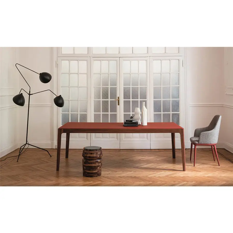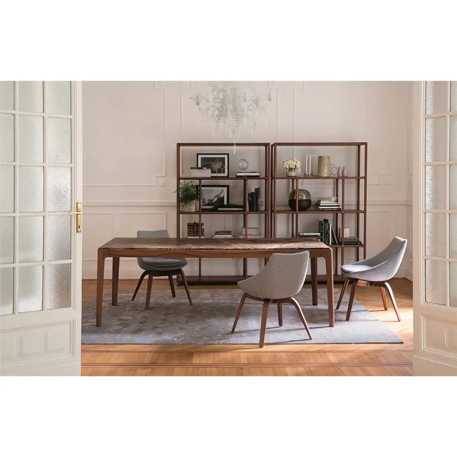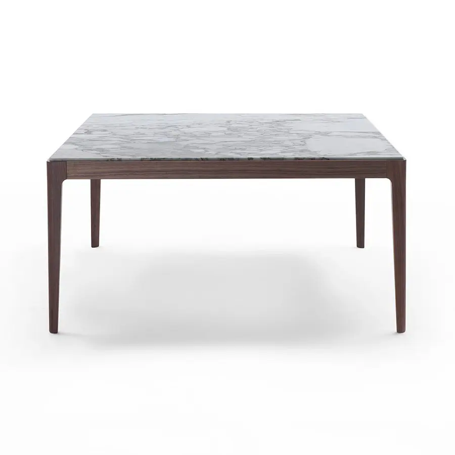 Mesa de comedor rectangular con estructura en nogal canaletta macizo y tapa de mármol o cristal al ácido retrobarnizado. Disponible en multitud de acabados y medidas, la mesa Ziggy se adapta a todos los ambientes. Es una mesa con carácter atemporal y elegante. Además de rectangular, está disponible en versión cuadrada de 150×150.